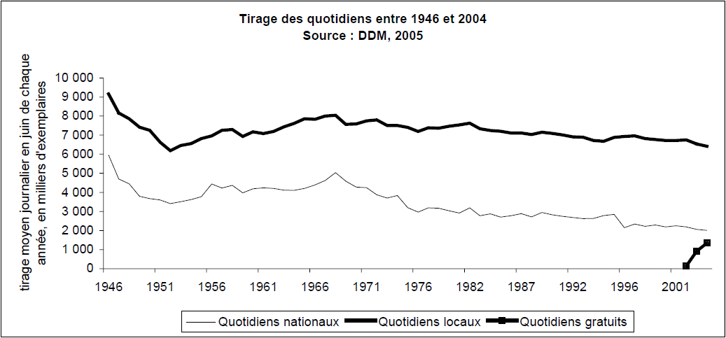 Voir tableau ci-dessous: Evolution des ventes de journaux depuis 1946, |